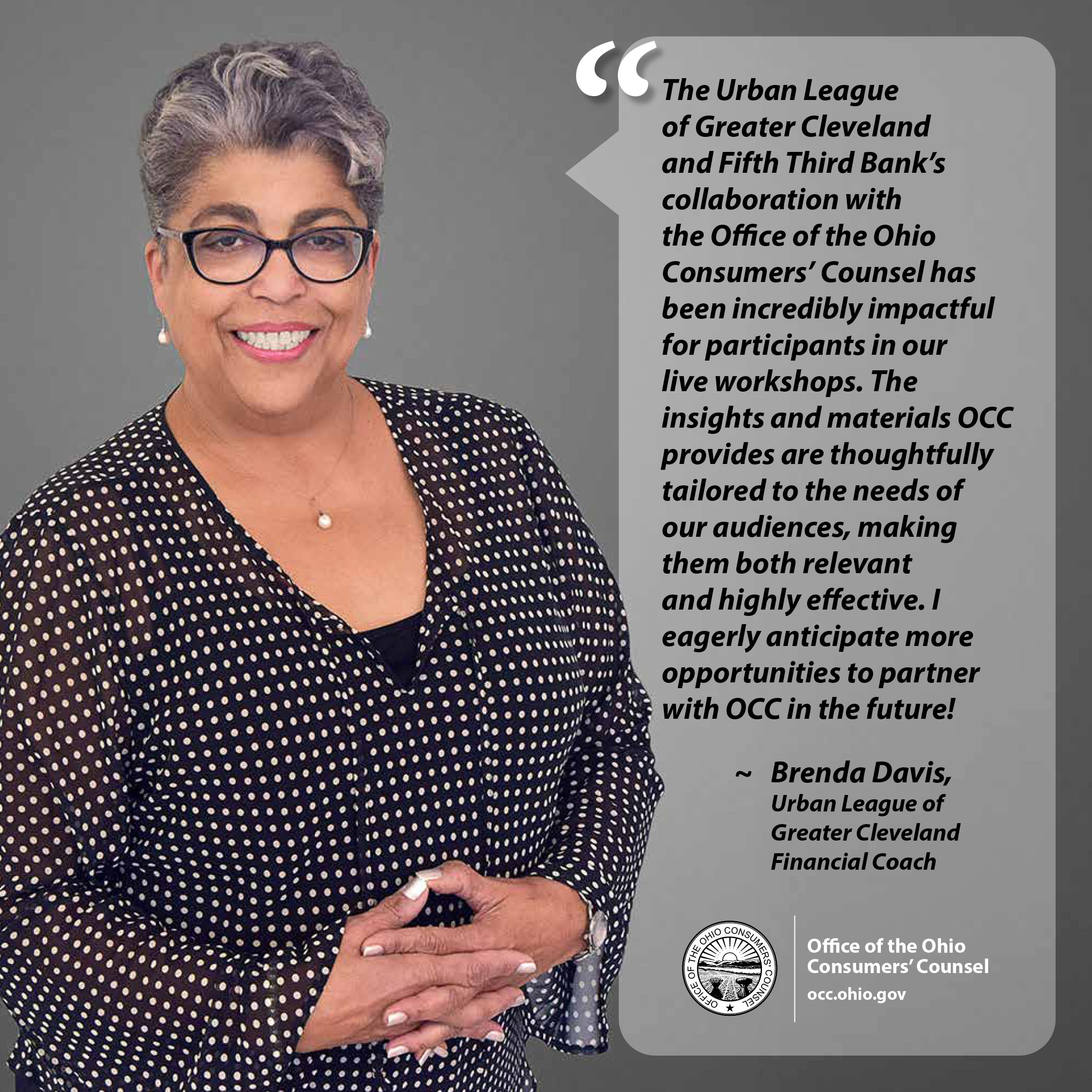 Since the Agency’s inception in 1976, OCC has helped to save Ohio utility consumers billions of dollars in avoided utility charges, participated to create payment assistance programs for low-income consumers, and worked to safeguard consumer protections. The Agency’s staff has educated thousands of utility consumers about choices available to them in a changing industry and ways to save money on their utility bills.